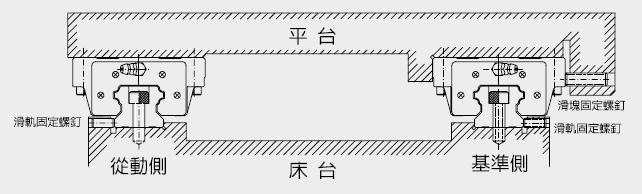 直線導(dǎo)軌必須根據(jù)機(jī)臺使用狀況,如受振動、沖擊力的程度,要求的行走精度及機(jī)臺限制而設(shè)定其安裝方法。