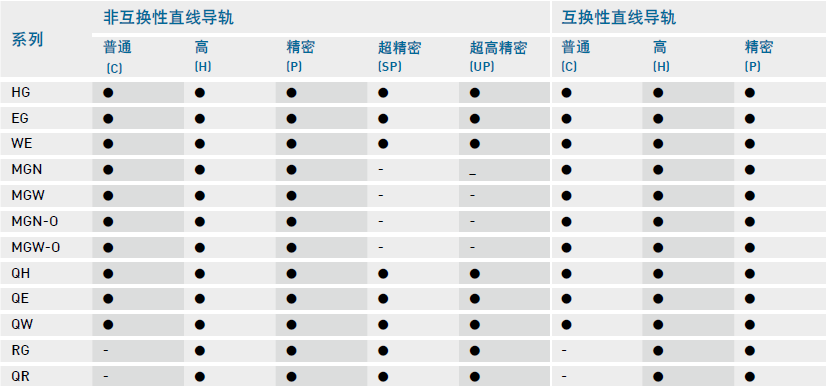 上銀直線導(dǎo)軌系列精度等級