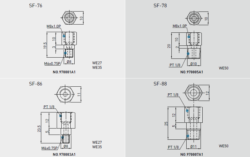 寬幅型滾珠直線導(dǎo)軌WE系列油管接頭型式及防塵配備