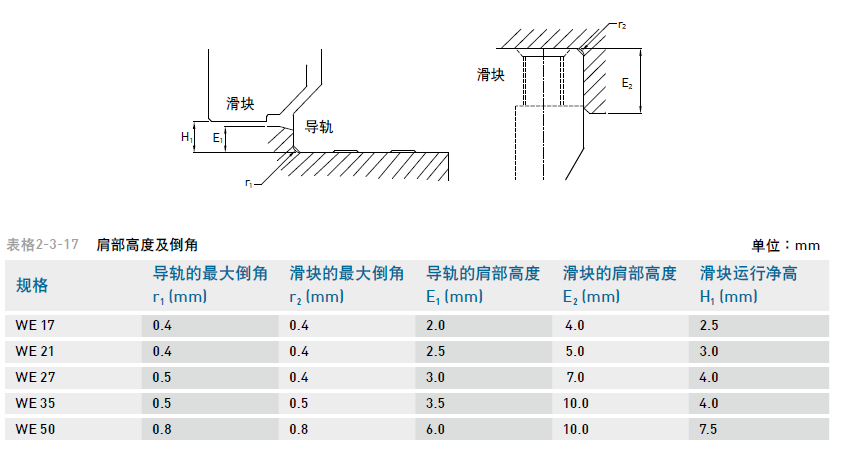 安裝直線(xiàn)導(dǎo)軌時(shí)必須注意安裝面肩部的狀況是否適當(dāng),如倒角過(guò)大,凸出的地方易造成直線(xiàn)導(dǎo)軌精度不良,而高度過(guò)高則會(huì)干涉滑塊。故如果能依照建議要求安裝面肩部,安裝精度不良即可排除。