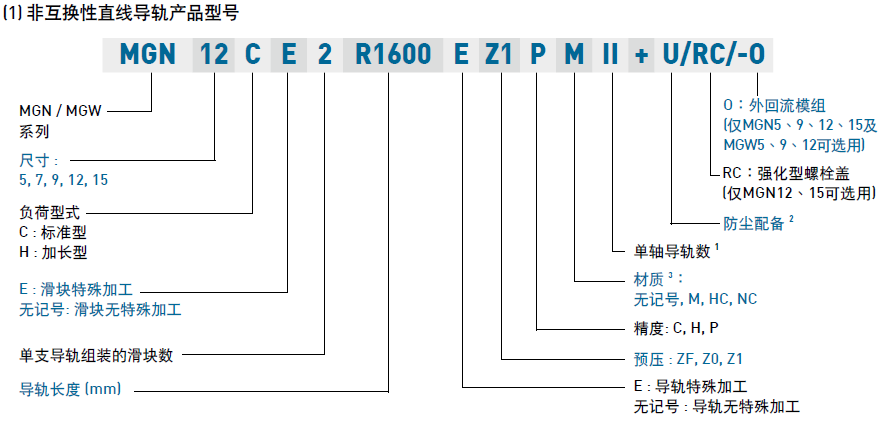 (1) 非互換性直線導(dǎo)軌產(chǎn)品型號