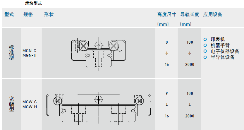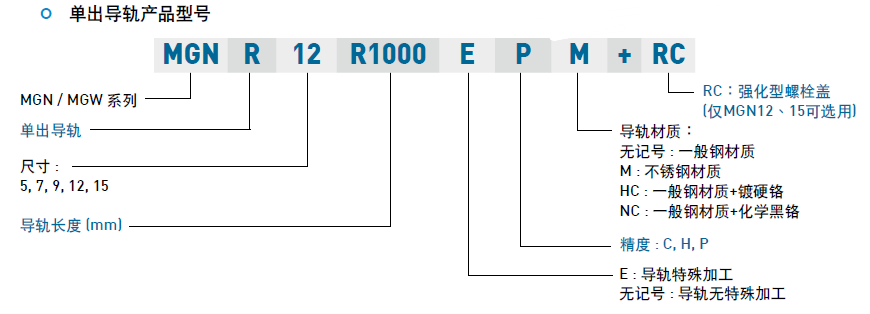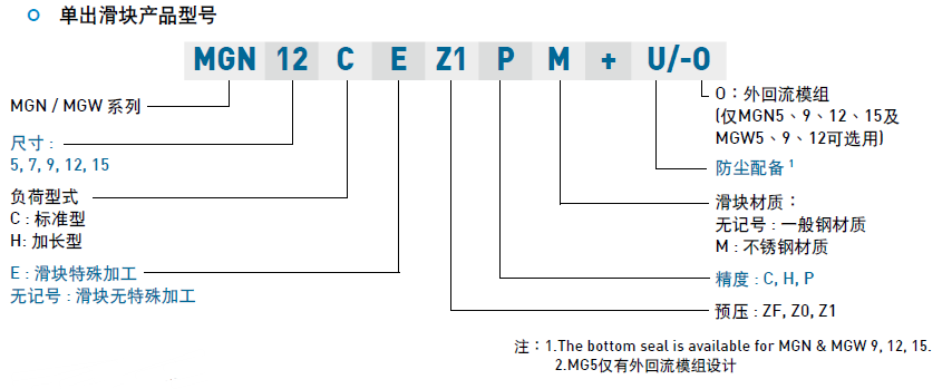 微型直線導(dǎo)軌MG系列的命名規(guī)則及型號