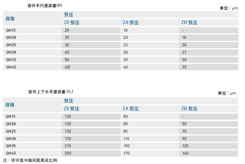 的順暢性;下表中注明了安裝平面的容許誤差值: