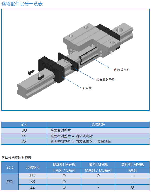 為了極大發(fā)揮直線導(dǎo)軌的特性和性能,防止外部的異物侵入直線運動系統(tǒng)內(nèi)部,導(dǎo)致異常磨損并縮短使用壽命。預(yù)料可能會有粉塵及異物侵入時,有必要選擇有效的密封裝置或防塵裝置。